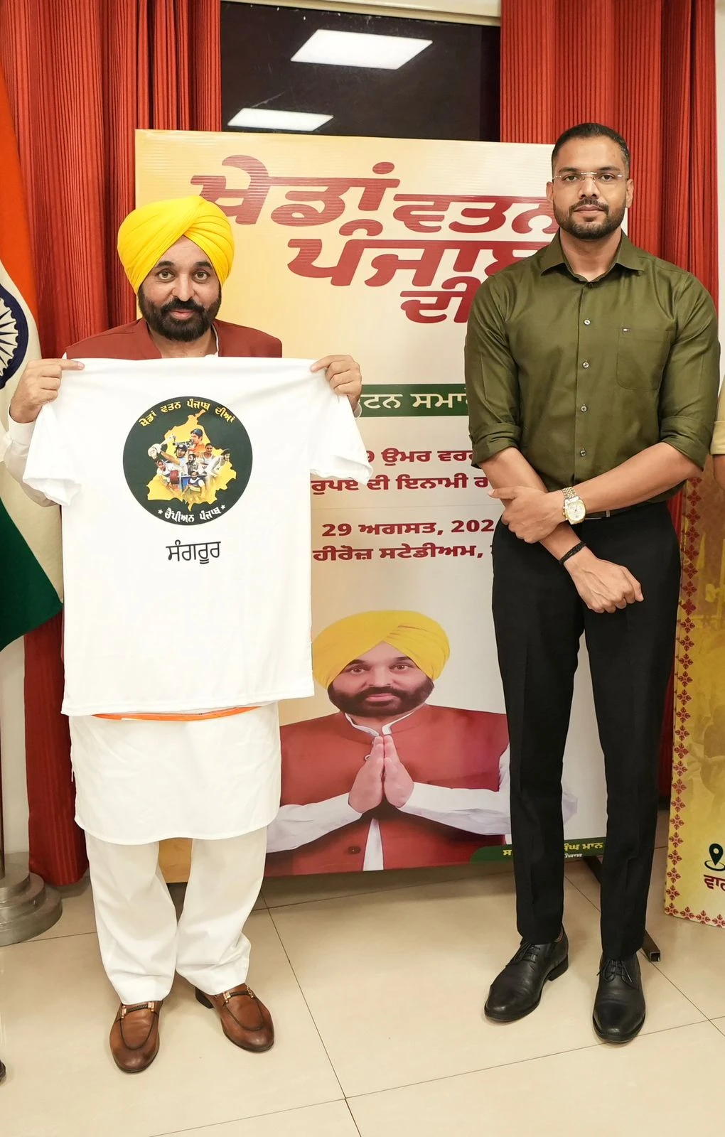 ਪੰਜਾਬ ਦੇ ਮੁੱਖ ਮੰਤਰੀ ਭਗਵੰਤ ਸਿੰਘ ਮਾਨ ਨੇ 29 ਅਗਸਤ ਤੋਂ ਸ਼ੁਰੂ ਹੋਣ ਵਾਲੇ ‘ਖੇਡਾਂ ਵਤਨ ਪੰਜਾਬ ਦੀਆਂ’ ਦੇ ਤੀਜੇ ਐਡੀਸ਼ਨ ਲਈ ਅੱਜ ਟੀ-ਸ਼ਰਟ ਅਤੇ ਲੋਗੋ ਲਾਂਚ ਕੀਤਾ।